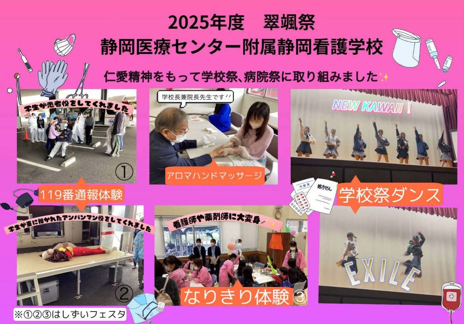 看護学校では、アロママッサージ、学校見学を実施しました。 令和7年度からは病院祭と同時開催! 病院のブースでも学生が病院スタッフと共に様々な医療体験を支援します。
