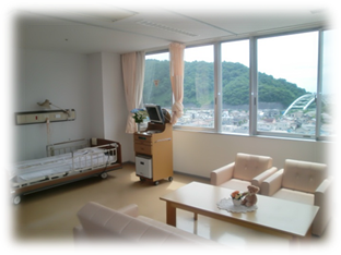 緩和病棟は、7階の西側にあり、眼下には狩野川が流れ、晴れた日には富士山を臨むこと